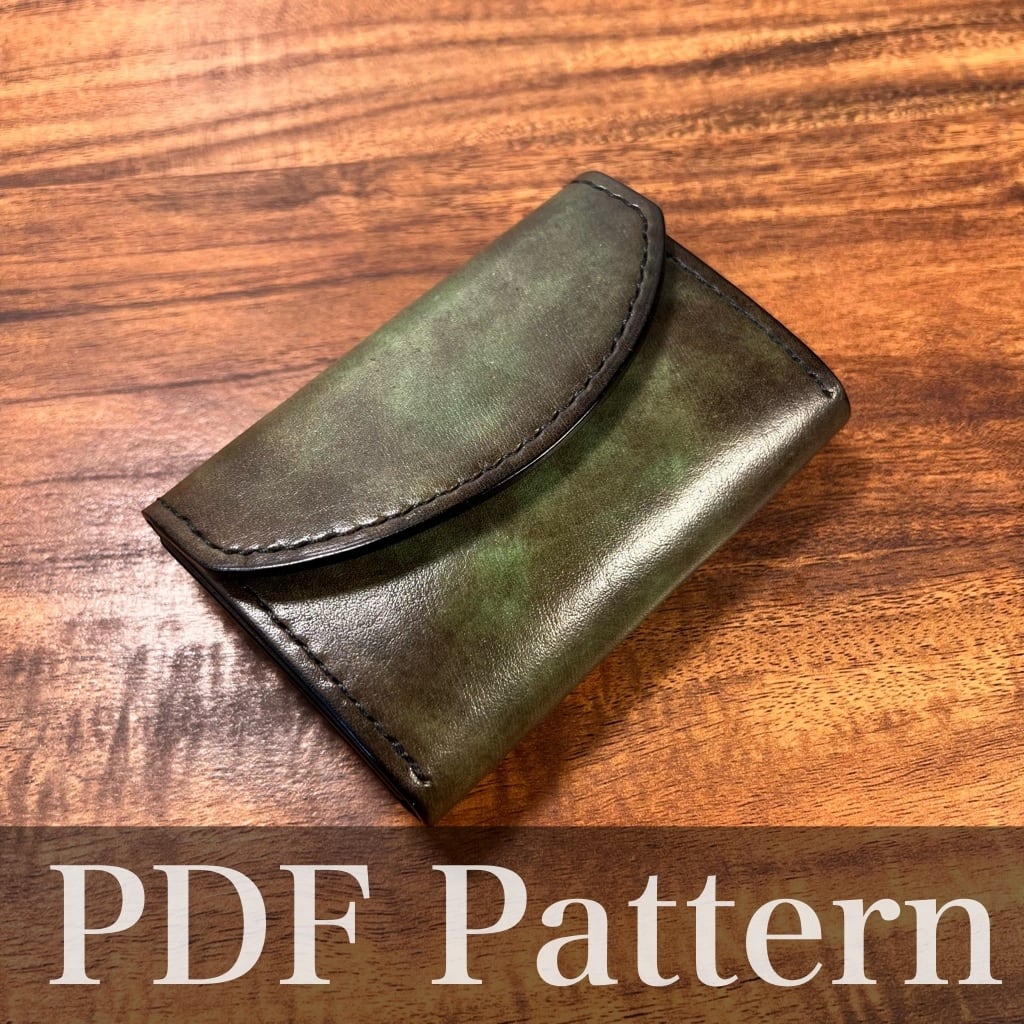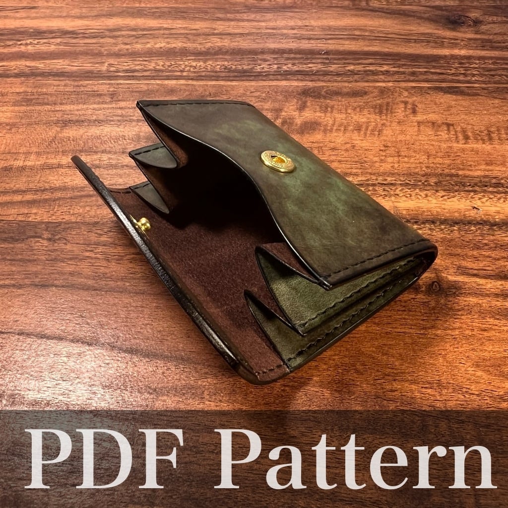 レザークラフト用の型紙 作成には別途金具類、芯材(厚紙0.5mm)が必要になります。 作り方詳細は下部YouTubeをご覧ください。 <完成後のサイズ感> 横10cm x 縦6.5~7cm